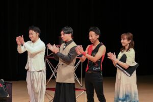 演者は4名。僕と、ムードメーカーkajiさん、ステージの空気を一瞬にして変えるジャグラー 望月ゆうさくさん、語り部 かすみさん。